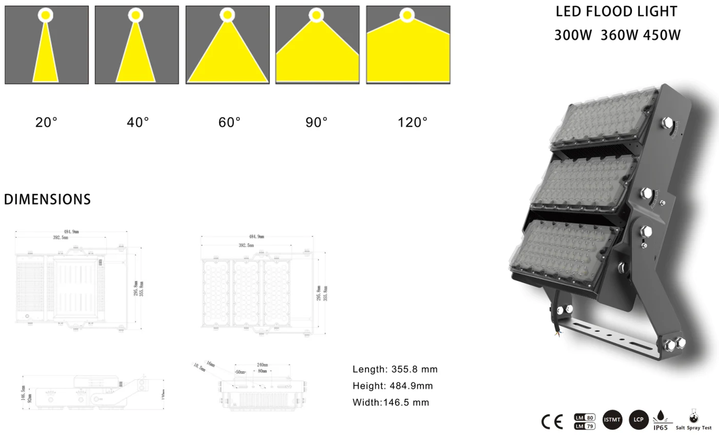 · Со осветлување што е еквивалентно на 400 вати и 500W метални халидни тела, ќе уживате во ладниот почеток на „инстант, без треперење“ и водечки во индустријата 155-160LM/W.